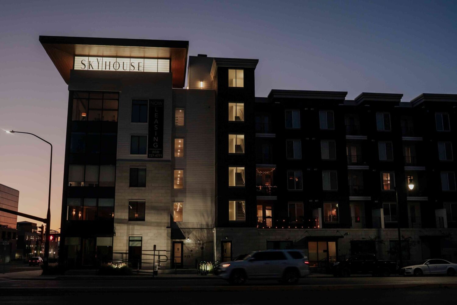 SKYHOUSE 4-level apartment building located in Salt Lake City, Utah with 225 residential units. PROJECT INFORMATION SERVICES: Mechanical | Electrical | Plumbing LOCATION: Salt Lake City, UT PROJECT TYPE: Multi-Family Housing YEAR COMPLETED: 2019 BUILDING SIZE: 4 levels, 225 units PHOTO GALLERY